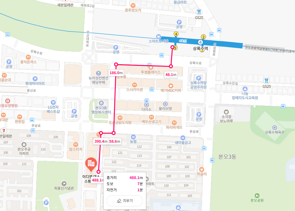 4호선 상록수역 3번출구에서 8분거리~
